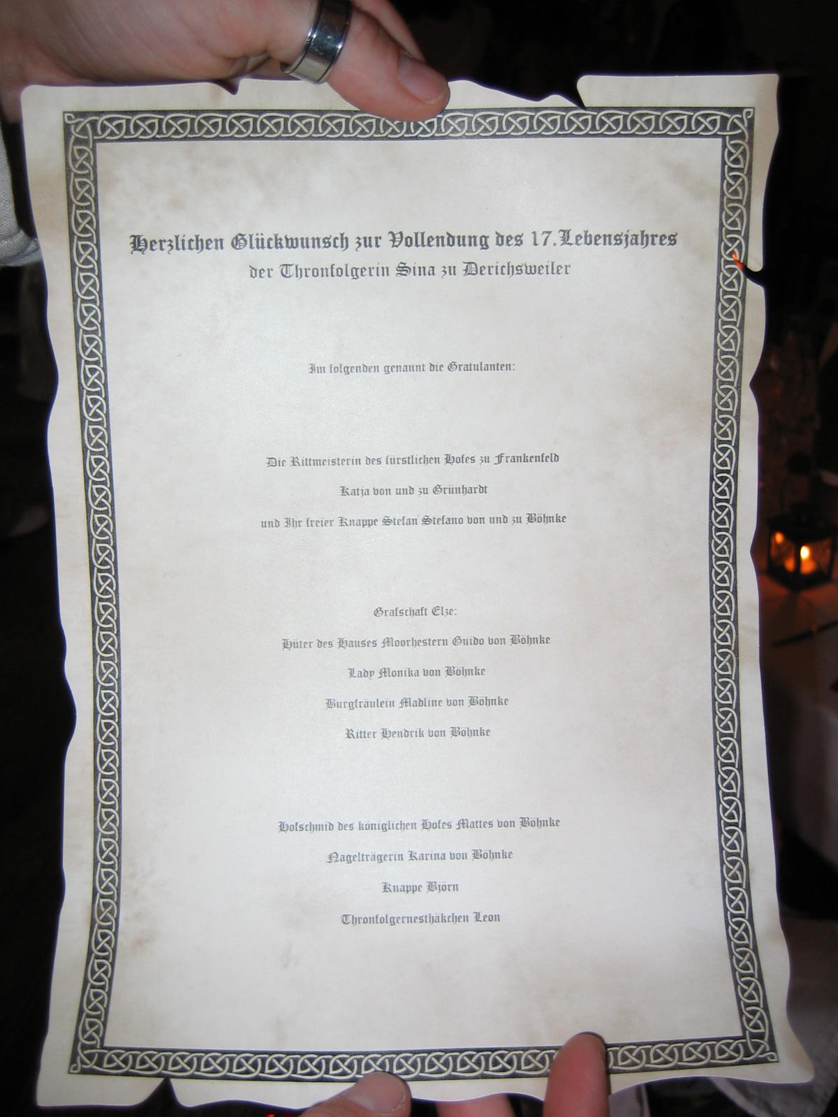 Danach sollte ich drei Überraschungen bekannt geben.